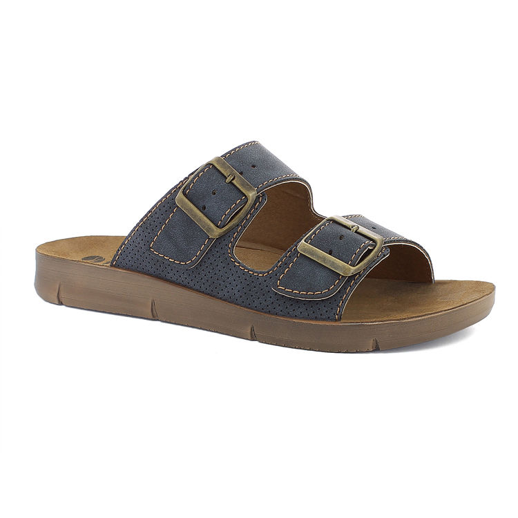 Ciabatte con doppia fascia e fibbia. Modello giovane con plantare in pelle.