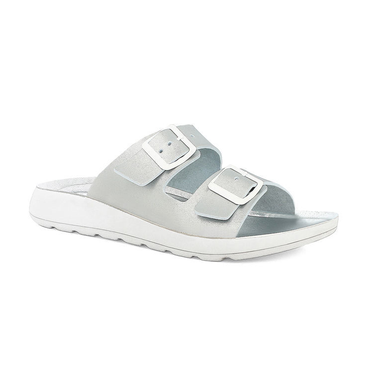 Beach slippers with adjustable buckles, flexible and lightweight sole.