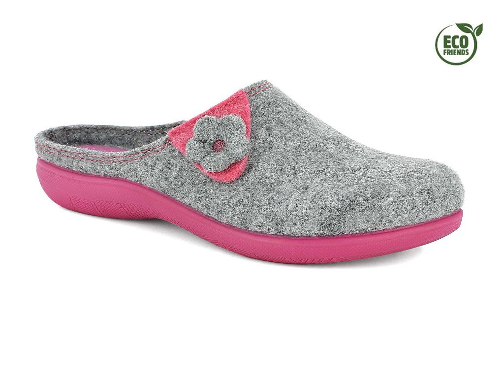 Lightweight and flexible winter slippers made with comfy recycled material and comfortable padded fabric footbed.