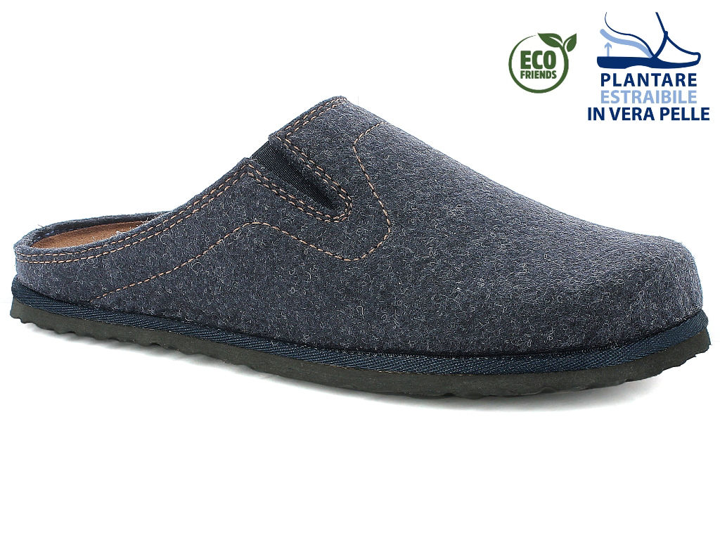 Warm and comfortable slippers made with recycled material. ECOFRIENDS slippers with a removable genuine leather insole.