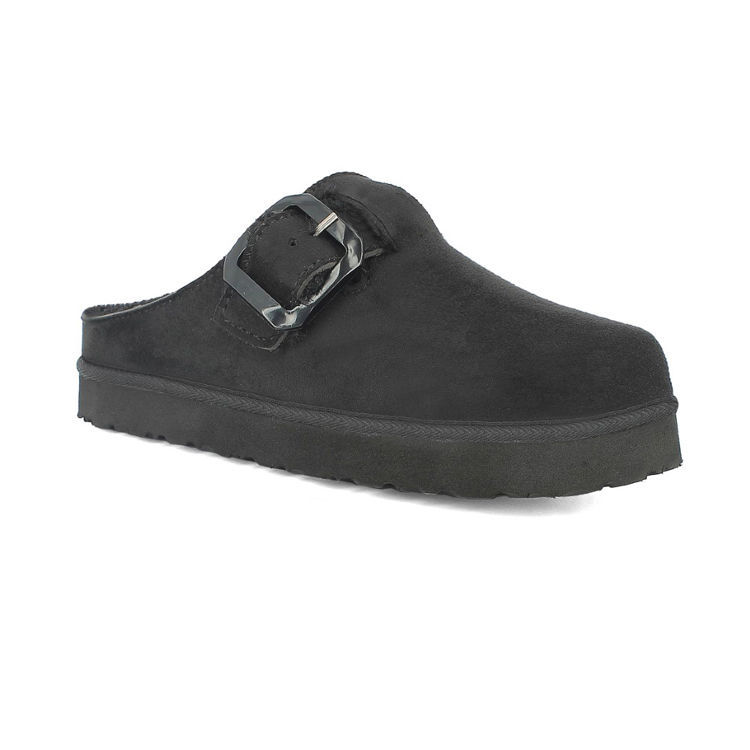 Warm slippers with faux fur and practical buckle.