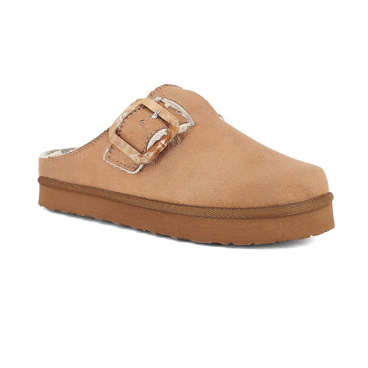Warm slippers with faux fur and practical buckle.