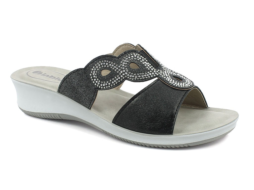 Ciabatta elegante a doppia fascia avvolgente con inserto elastico nella parte superiore, per accogliere al meglio il tuo piede. Un decoro di strass impreziosisce questa ciabatta, rendendola elegante.