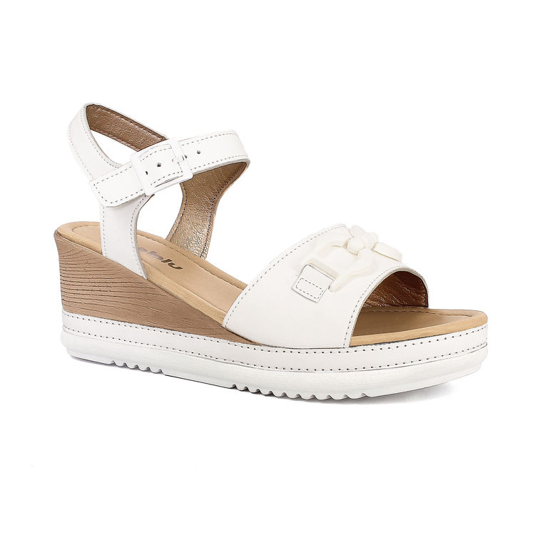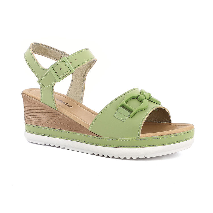 Sandali a zeppa con particolare effetto opaco, semplici ed eleganti con cinturino regolabile tramite fibbia.