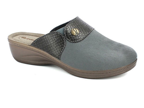Calde pantofole invernali da donna con tomaia realizzata in morbida ecopelle. Il sottopiede in vera pelle è imbottito e automodellante, dona un comfort extra al piede. Il tacco posteriore di 4,5 cm aiuta la schiena a mantenere una postura corretta. La suola in poliuretano assorbe gli urti e consente una buona aderenza al terreno. Elevata flessibilità e leggerezza.