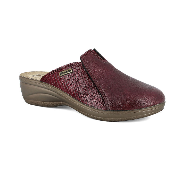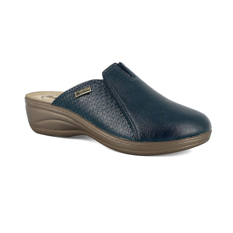 Slippers with anatomical leather insole. Leather effect upper with practical elastic.