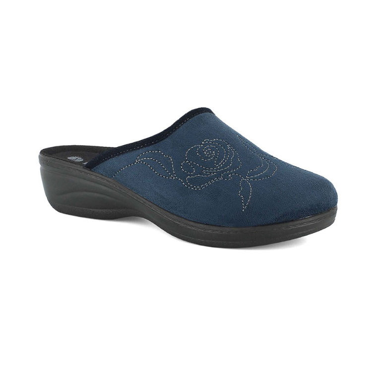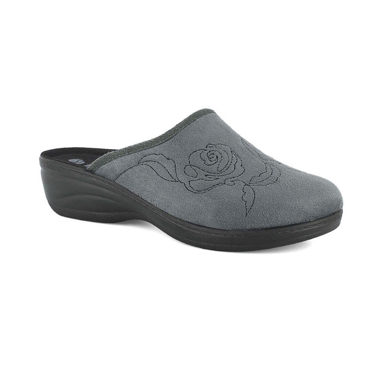 Warm women's winter slippers with delicate floral embroidery made of soft fabric. High flexibility and light weight.
