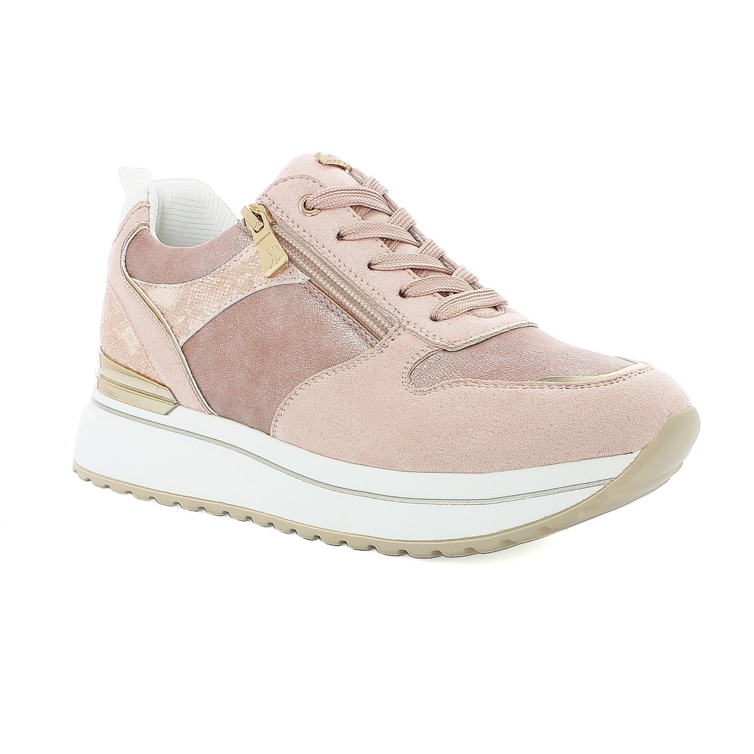 Comfortable sneakers featuring multiple tone-on-tone spring-inspired inserts, equipped with both laces and a zipper for quick fastening. they showcase an original colored line running along the entire sole and a glossy detail above the heel.