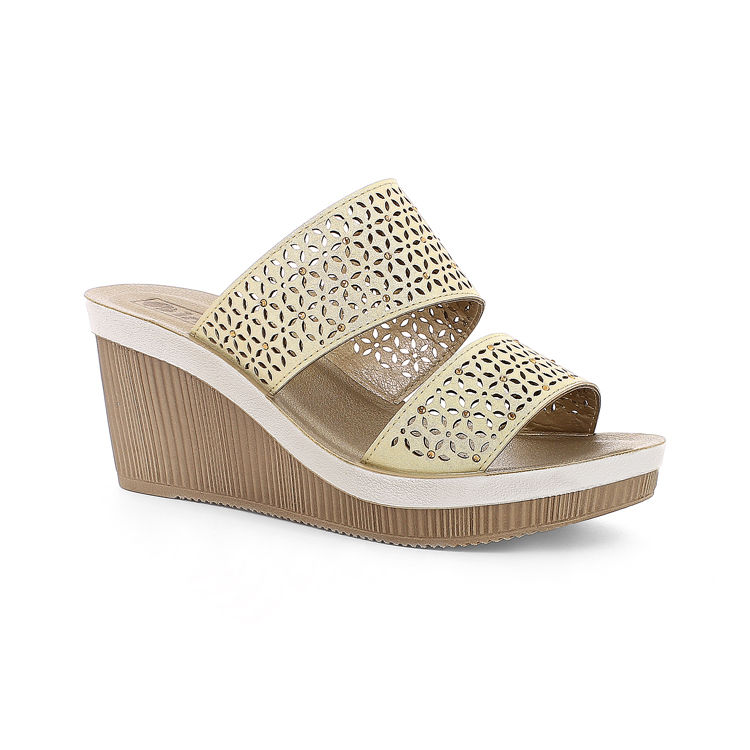 Zeppe con decoro traforato a motivo floreale. Plantare imbottito.