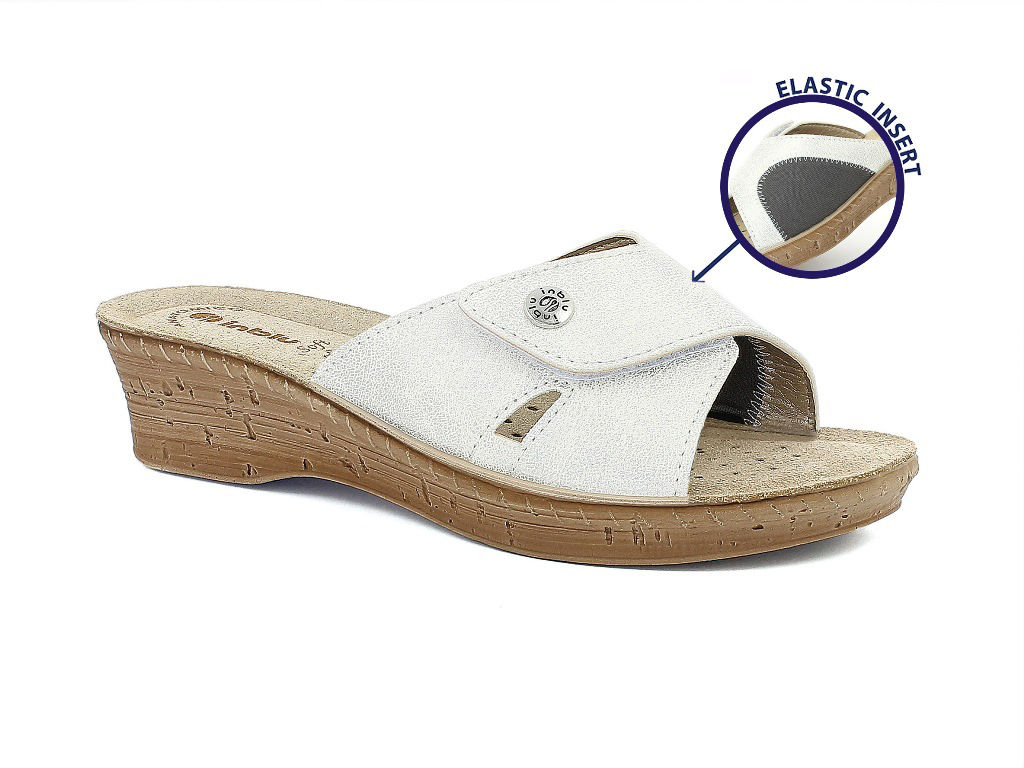 Ciabatta mono fascia regolabile grazie alla chiusura a strappo e inserto elastico. Plantare imbottito in VERA PELLE, per darti la comodità che meriti.