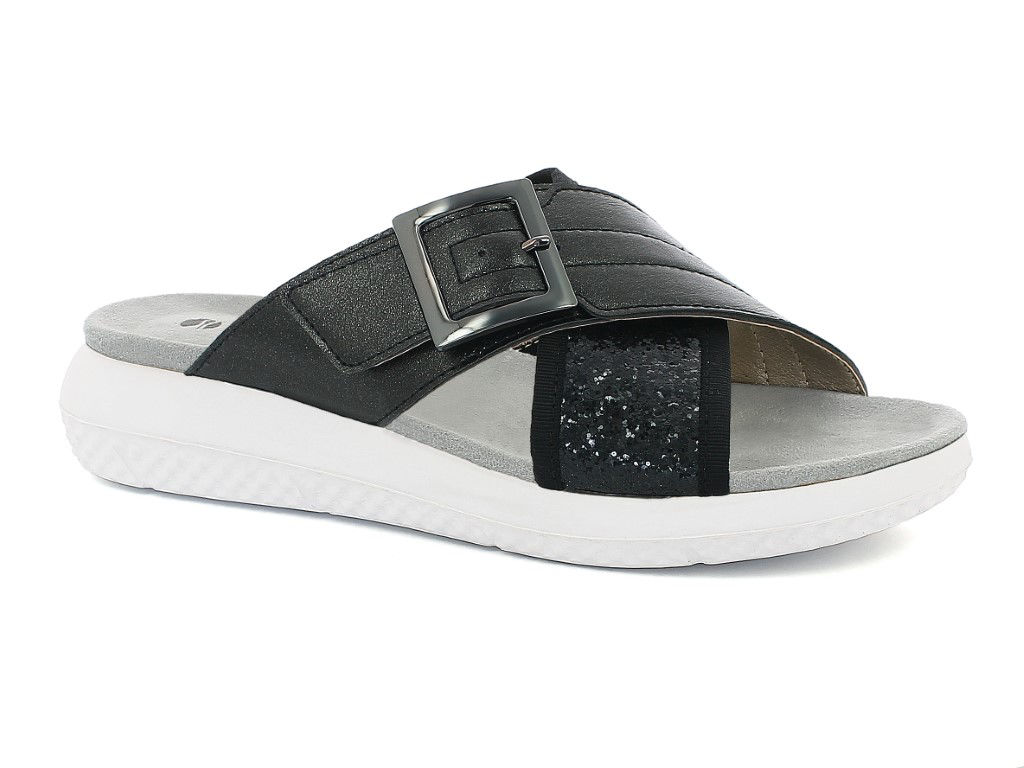 Ciabatta estiva con maxi fibbia regolabile e morbido plantare.
