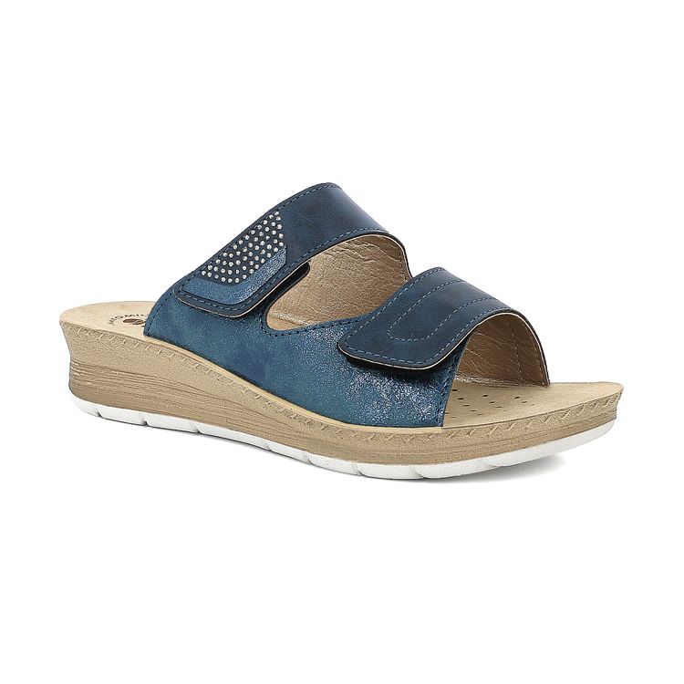 Queste ciabatte hanno un leggero tacco posteriore di quattro centimetri mentre la calzata con doppia chiusura a strappo rende l'indosso perfetto. La fascia superiore è decorata con deliziosi brilllantini per darti uno stile unico e inconfondibile.