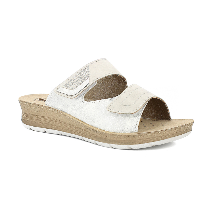 Ciabatte con doppia fascia e morbido plantare in vera pelle imbottita.