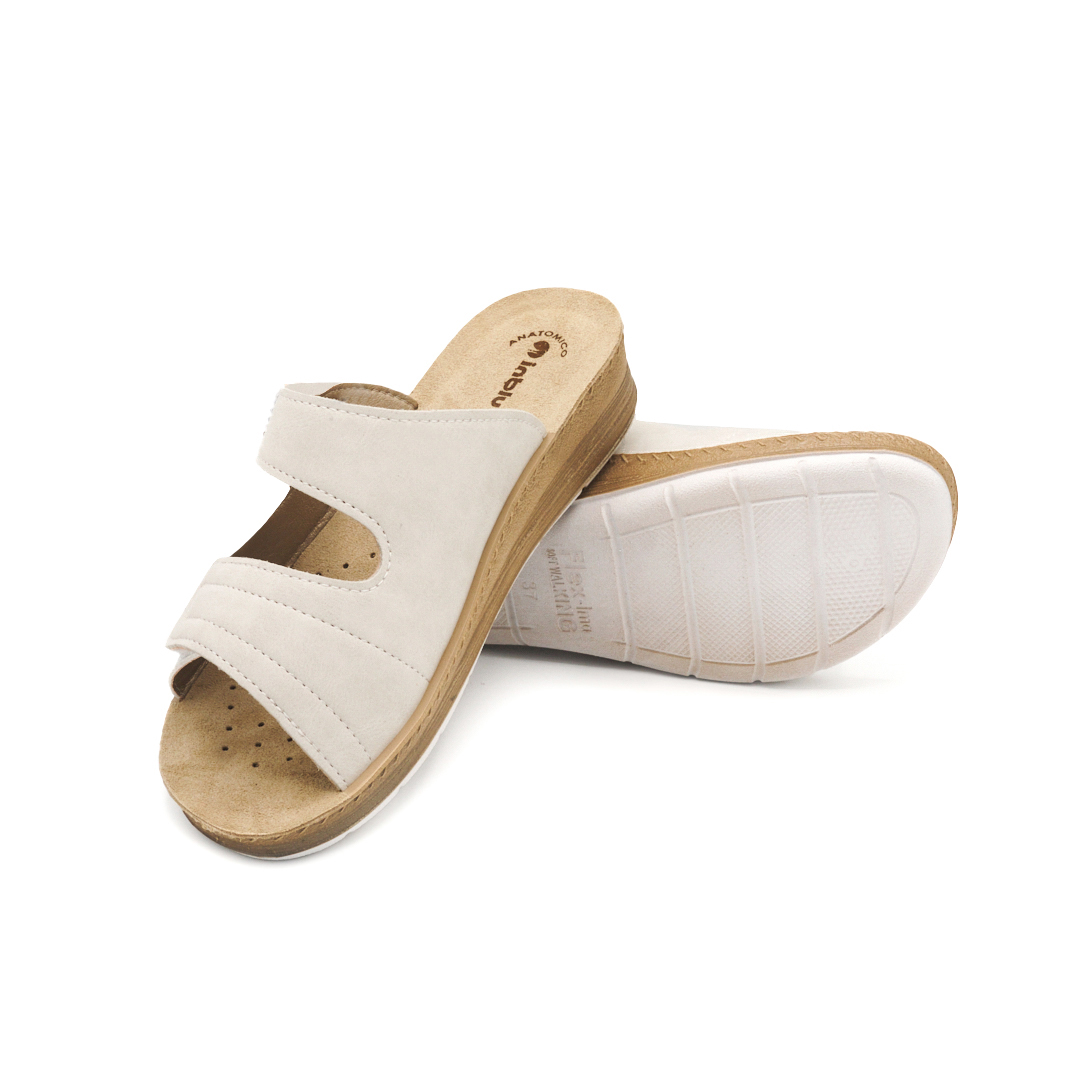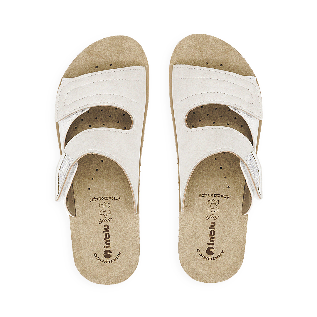 Ciabatte con doppia fascia e morbido plantare in vera pelle imbottita.