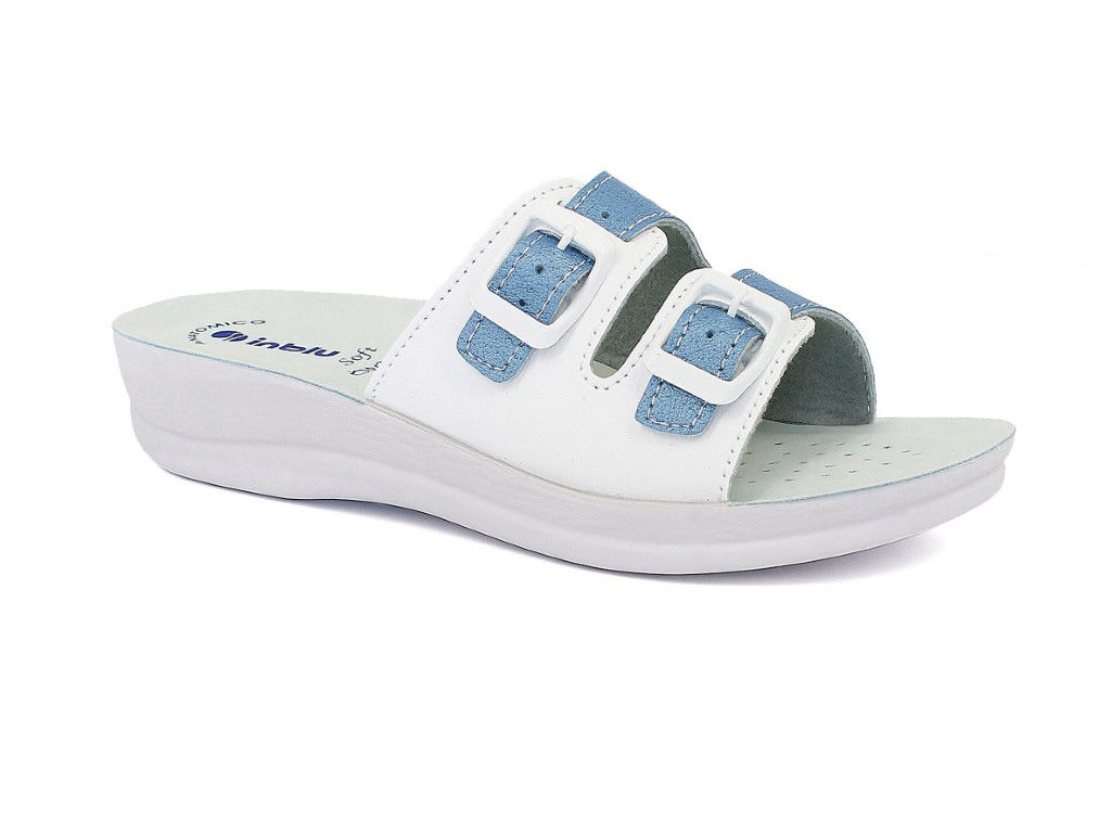 Ciabatta da casa con doppia fascia regolabile tramite fibbie e plantare imbottito.