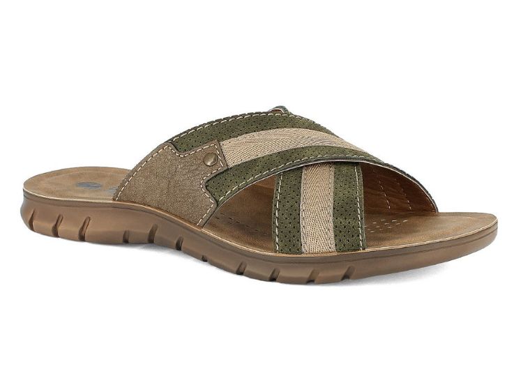 Ciabatta a fasce incrociate con suola flessibile ed ergonomica e morbido plantare imbottito.