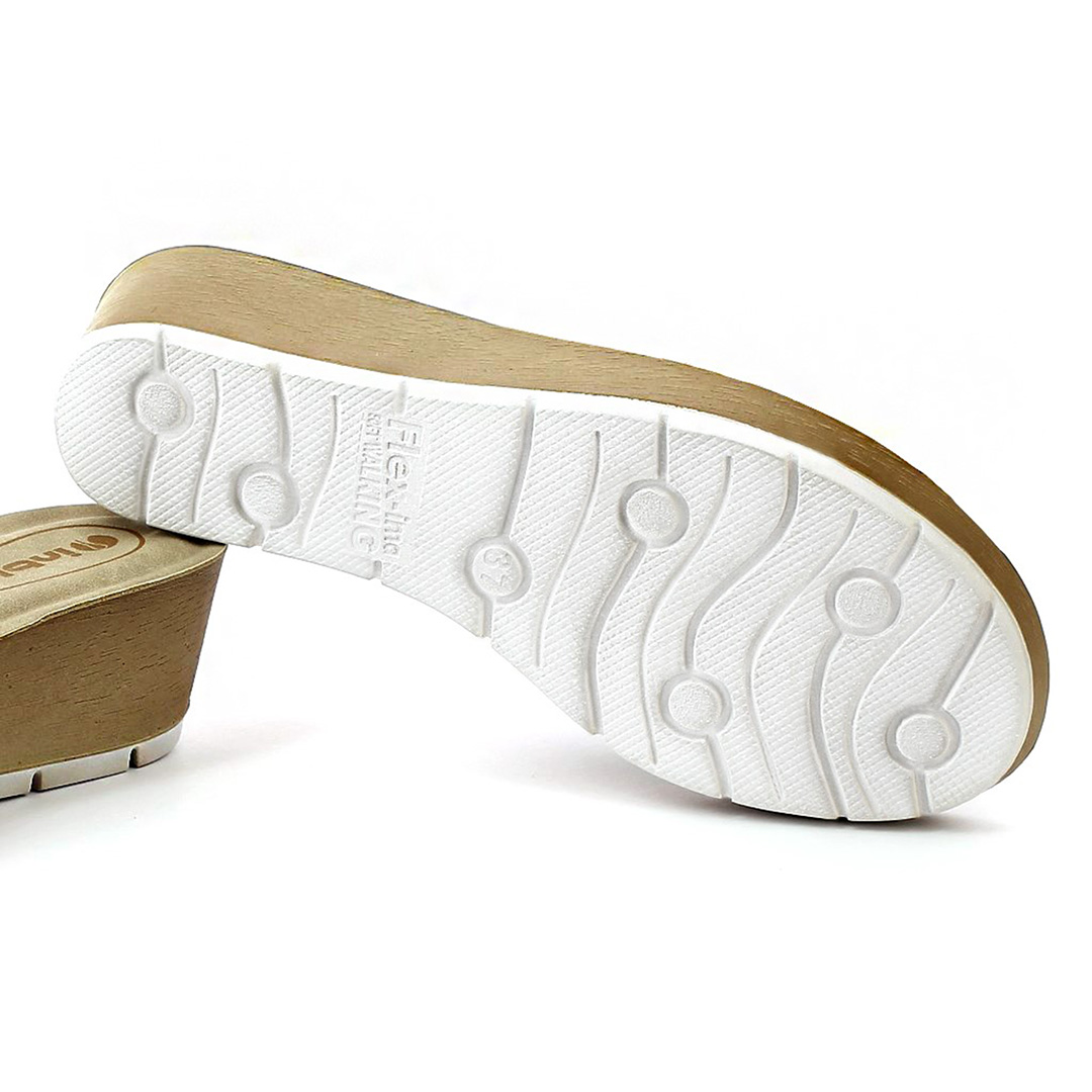 Ciabatte con tacco di cinque centimetri e tomaia a doppia fascia unita con particolare design a s ricoperto di strass. Un discreto inserto elastico fa sì che questa calzatura si adatti ad ogni collo del piede.La suola comoda e la luminosità di questa ciabatta ti conquisteranno!