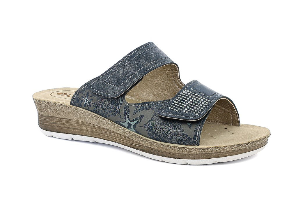 plantare imbottito e suola leggerissima grazie al materiale poliuretanico. Calzata comoda. I punti luce e la fantasia argentata donano a questa ciabatta un tocco di eleganza.