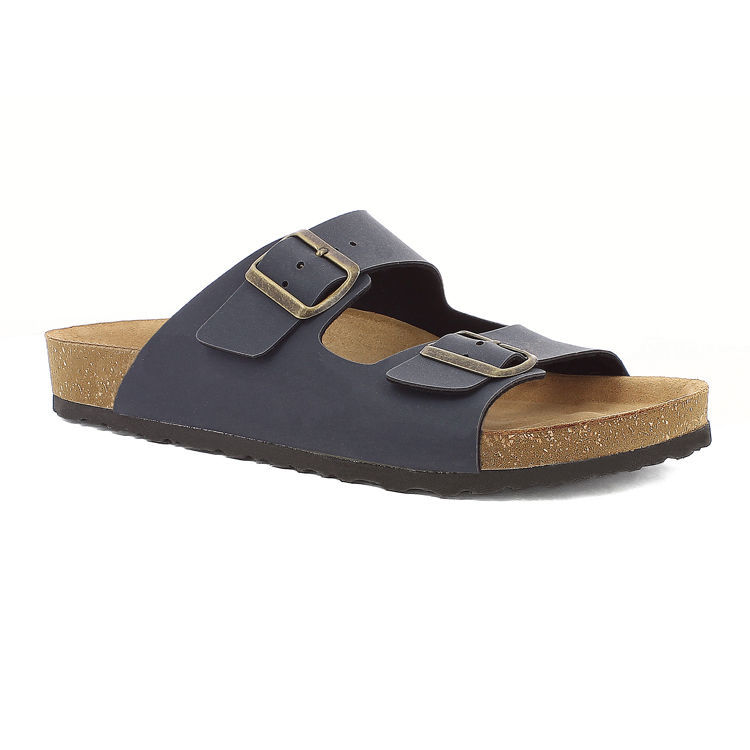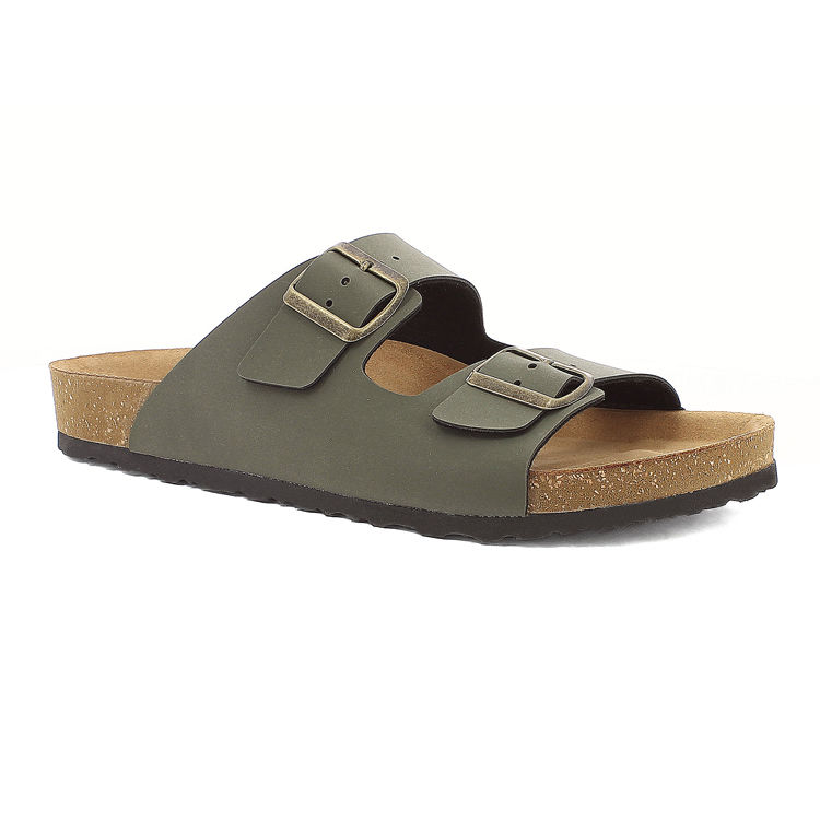 Ciabatte da uomo con doppia fibbia regolabile e plantare in vera pelle imbottito.