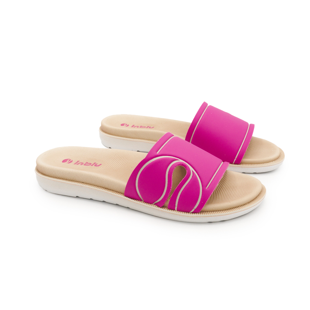 Novità 2025: ciabatte colorate con disegno che ricorda il logo inblu. La suola è Dual Density: morbida dentro e resistente fuori.