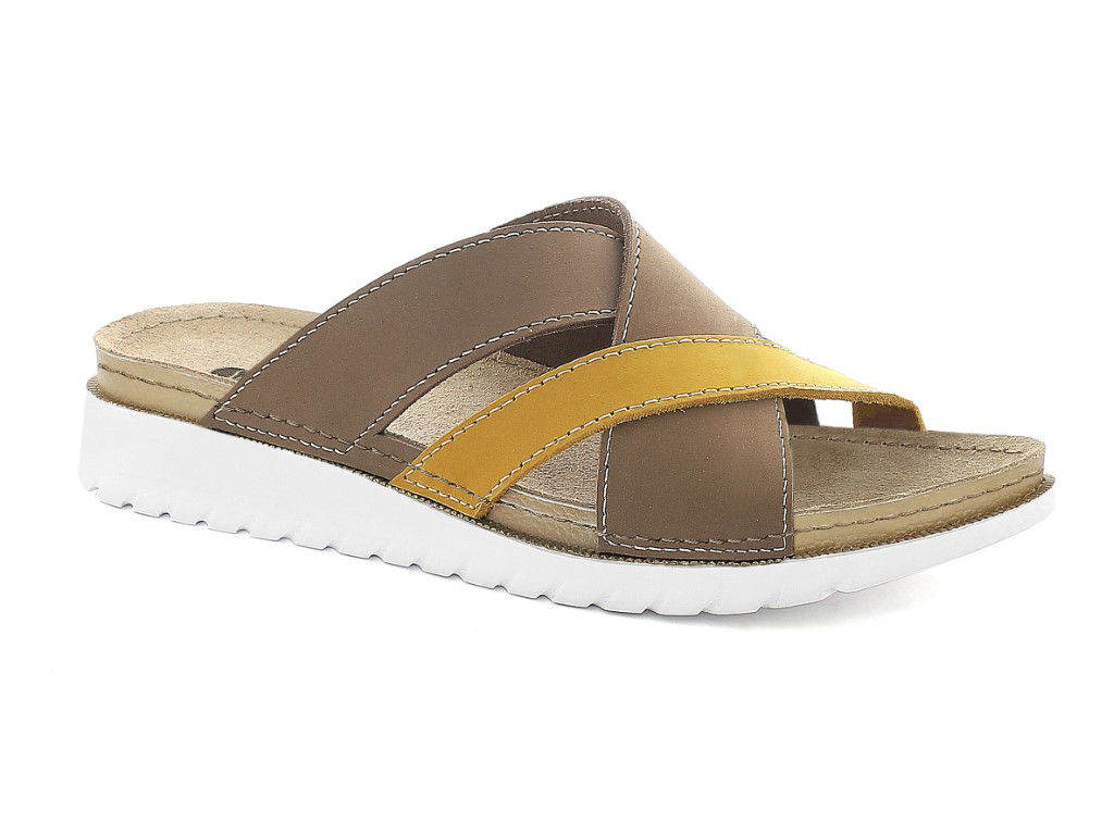 Ciabatte in PELLE con fasce intrecciate. Morbido plantare imbottito con calzata comoda.