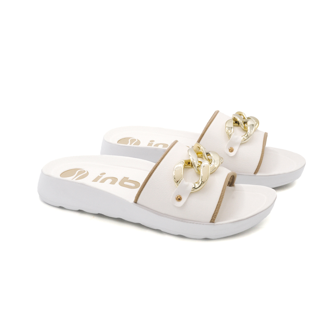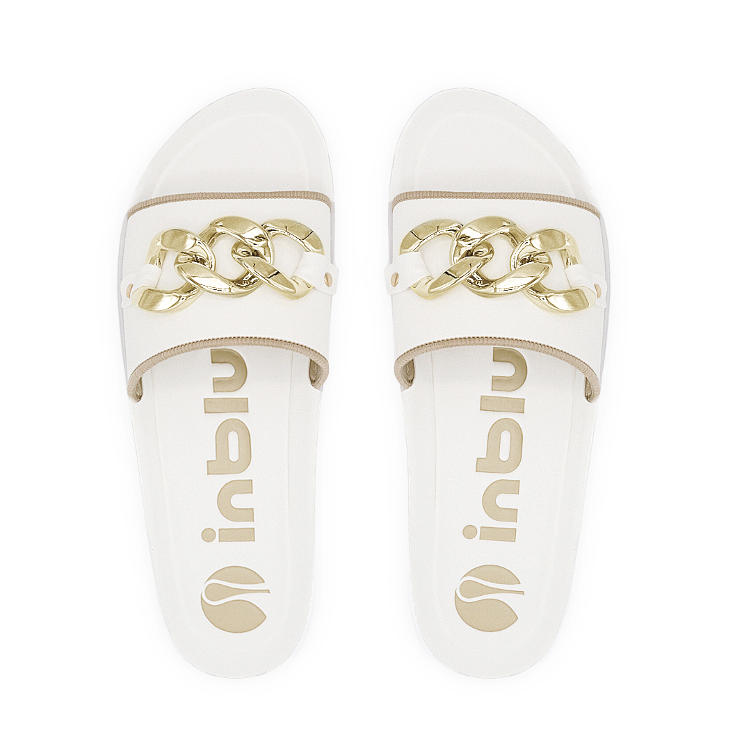 Ciabatte mare con fascia e maxi catena colorata cangiante. Suola super morbida e flessibile.