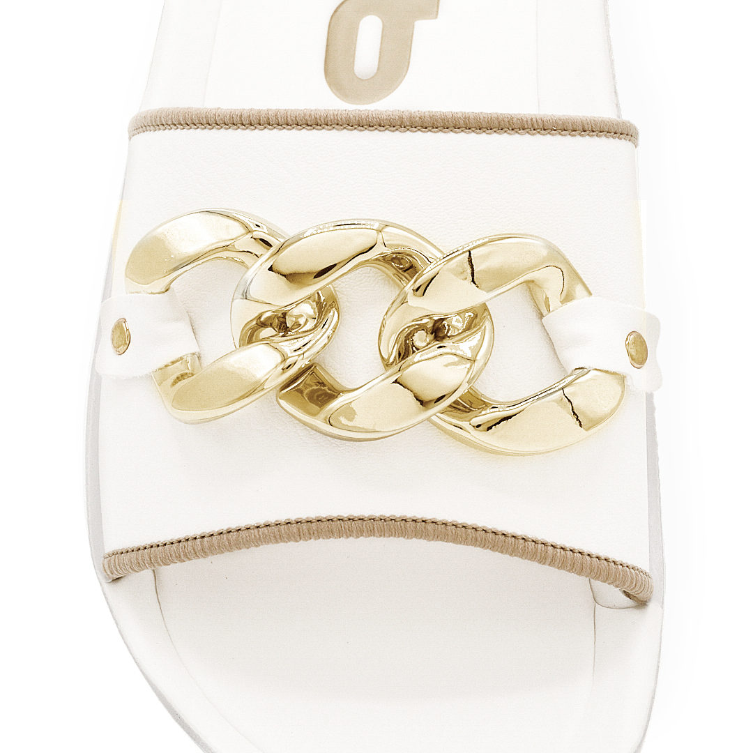 Queste ciabatte hanno un'originale catena colorata e cangiante: un tocco davvero super glam!Se sei quella che aspetta l'happy hour tutto il giorno questa è la ciabatta che fa per te! Di certo non ti farà passare inosservata.