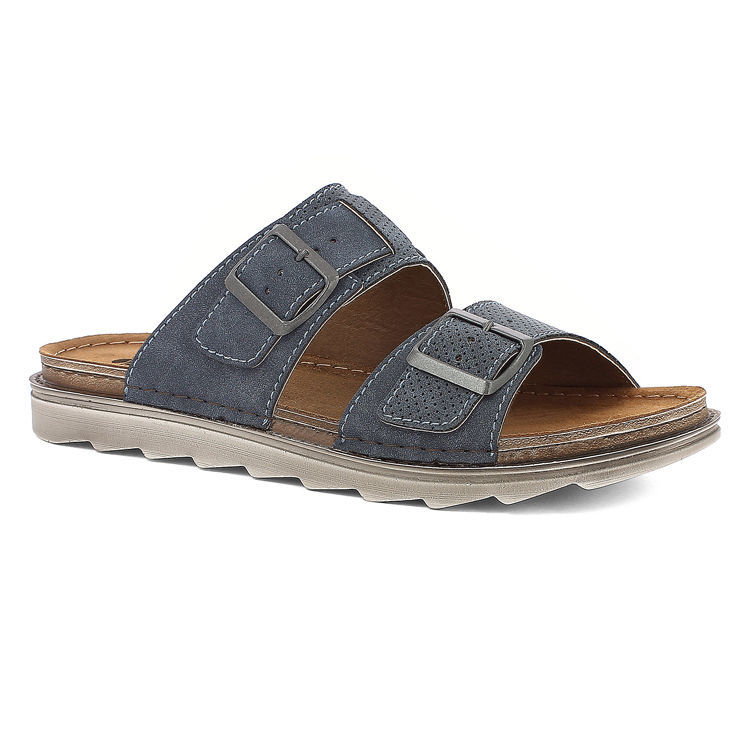 Ciabatte a doppia fascia con fibbie. Plantare in vera pelle.