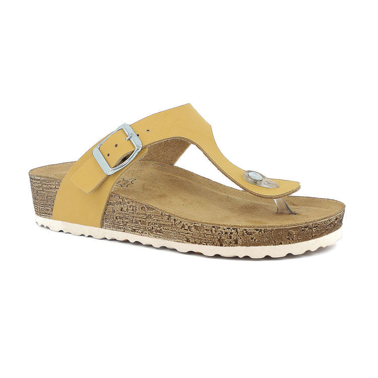 Semplici infradito con fibbia regolabile e plantare in vera pelle imbottito.