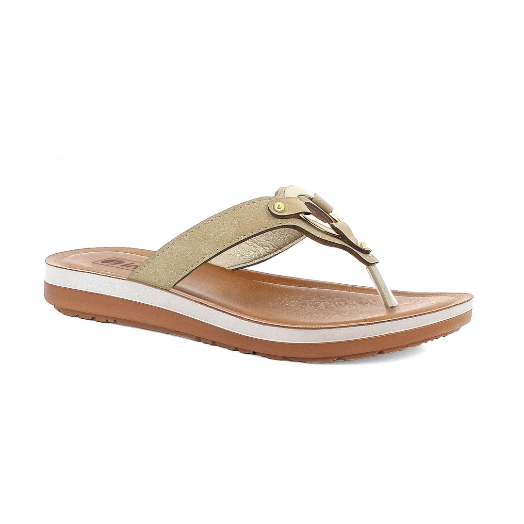 Queste infradito sono una novità 2026 e si distinguono per la tomaia dal design curato, arricchita da dettagli metallici che donano un tocco moderno e raffinato al modello. Sono perfette per completare look casual.Il plantare in ecopelle imbottita offre una sensazione morbida e confortevole. La suola, dal design bicolore, è leggera e resistente.