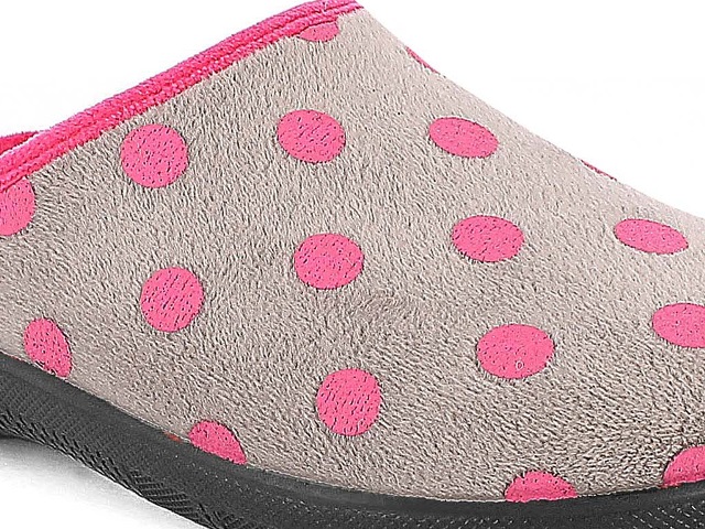 Leggerissime e divertenti pantofole a pois con soffice sottopiede in tessuto imbottito.