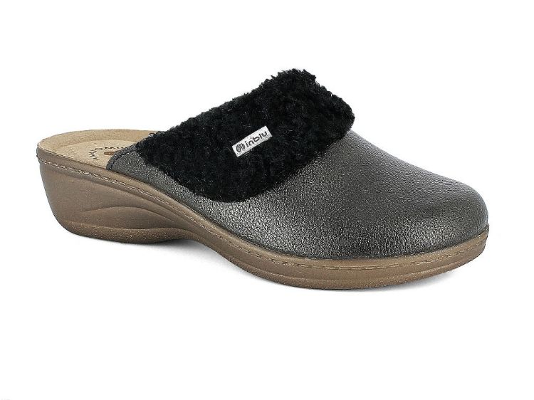 Calde pantofole invernali da donna con tomaia realizzata in morbida ecopelle e bordo in ecopelliccia.