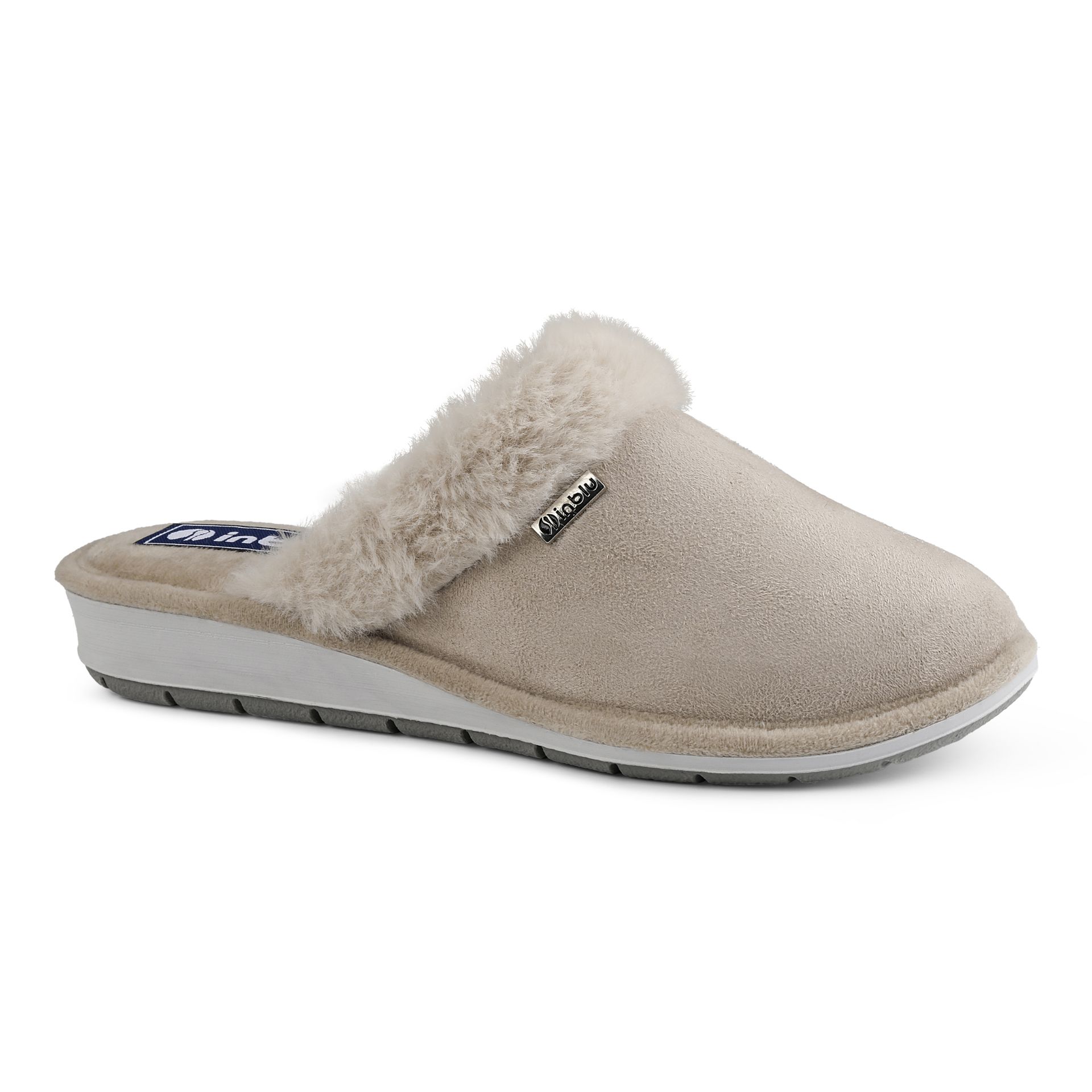 Calde pantofole con bordo in ecopelliccia. Hanno un comodo plantare imbottito.