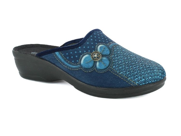 Calde pantofole invernali da donna con plantare in pelle imbottito. Flessibili e leggere, hanno fantasia a fiori e pois.
