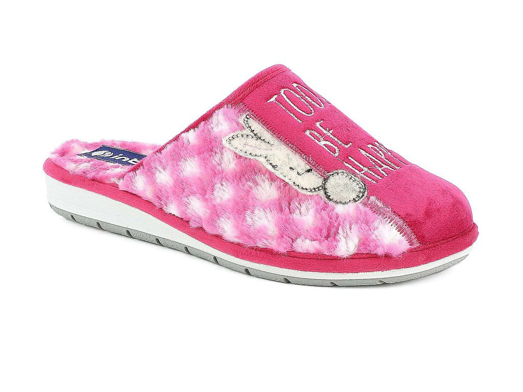 Comode pantofole a pois con coniglio e frase Today be happy.