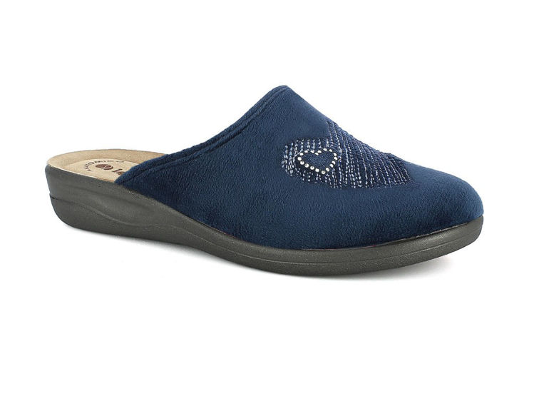 Pantofole con cuori di strass in morbido e caldo tessuto. Il leggero tacco aiuta a mantenere una postura ideale.