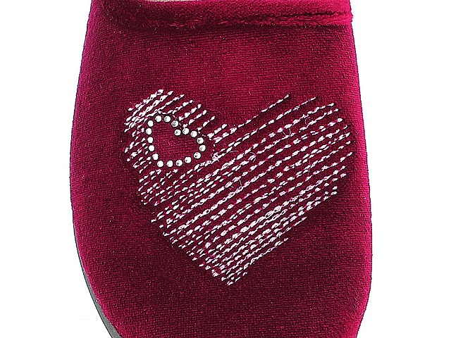 Pantofole con cuori di strass in morbido e caldo tessuto. Il leggero tacco aiuta a mantenere una postura ideale.