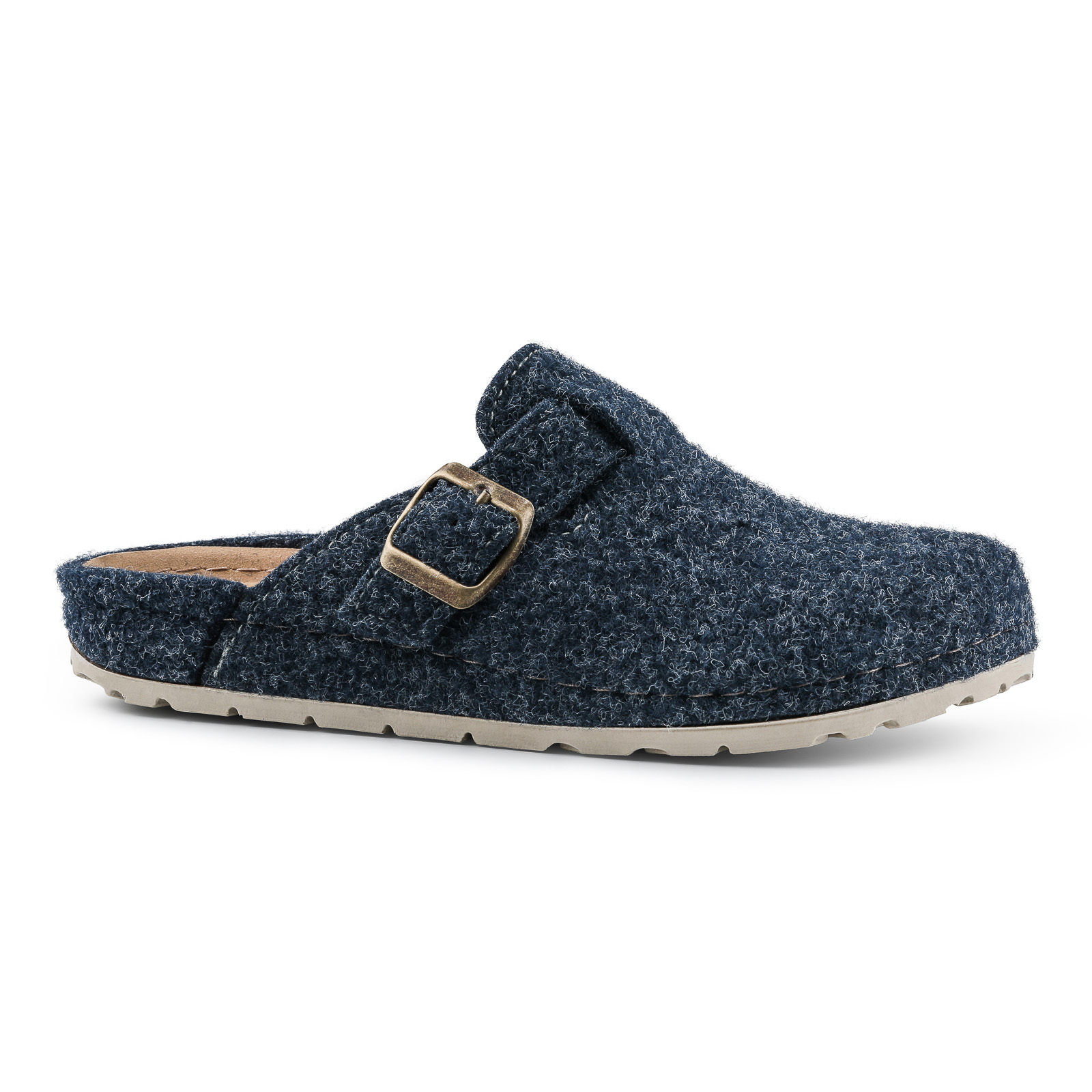 Comode pantofole con pratica fibbia regolabile. Hanno un plantare in ecopelle imbottito.