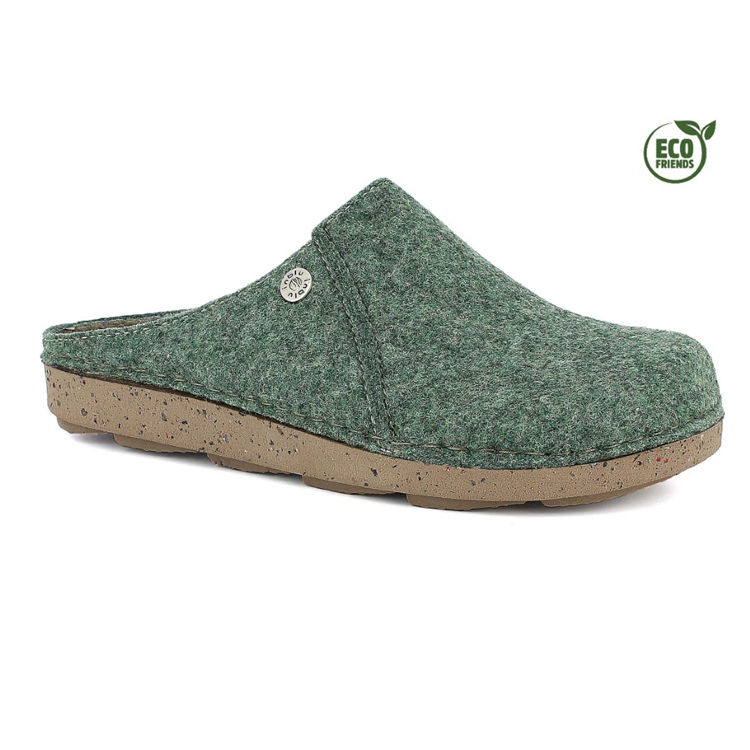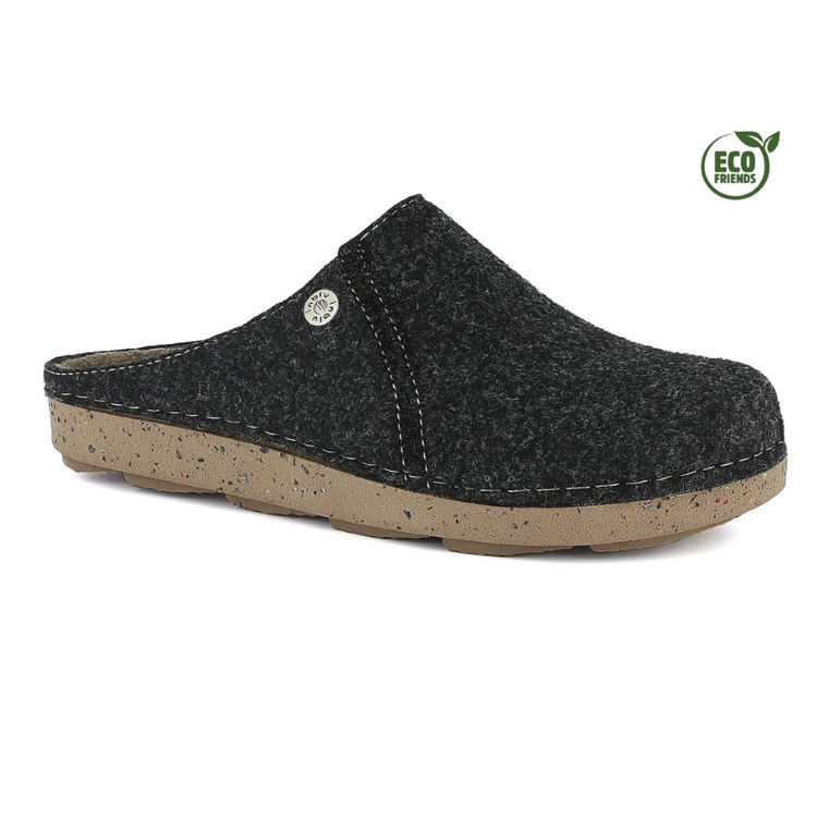 Queste calde pantofole ECOFRIENDS in feltro con pratica suola di tre centimetri.