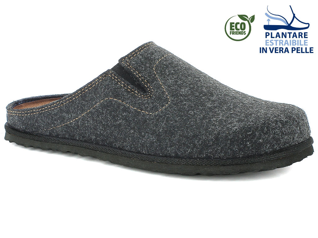 Le nuove pantofole ECOFRIENDS con plantare estraibile antishock in morbida pelle ha un inserto elasticizzato.