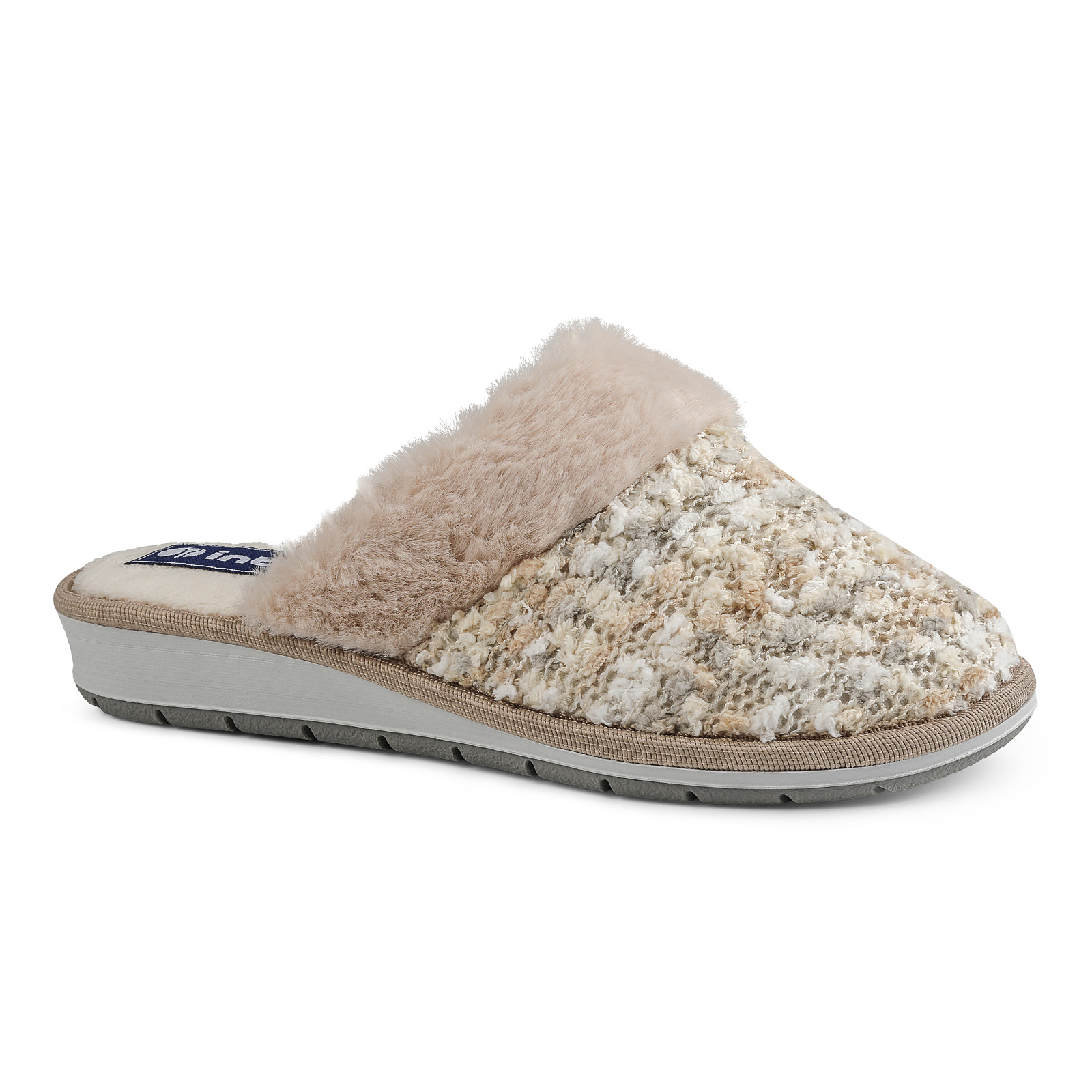 Calde pantofole effetto lana con bordo morbido.