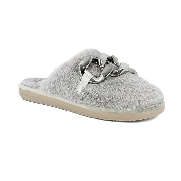 Morbidissima pantofola con catena opaca e lucida. Dalla linea giovane e fresca, ha una suola flessibile.