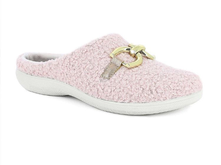 Pantofole fluffy con elegante fibbia. Con soffice sottopiede in tessuto imbottito.