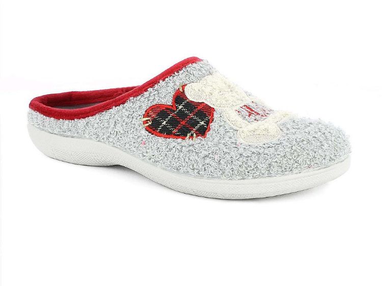 Morbide pantofole con orsetto e cuore con fantasia scozzese. Con soffice sottopiede in tessuto imbottito.