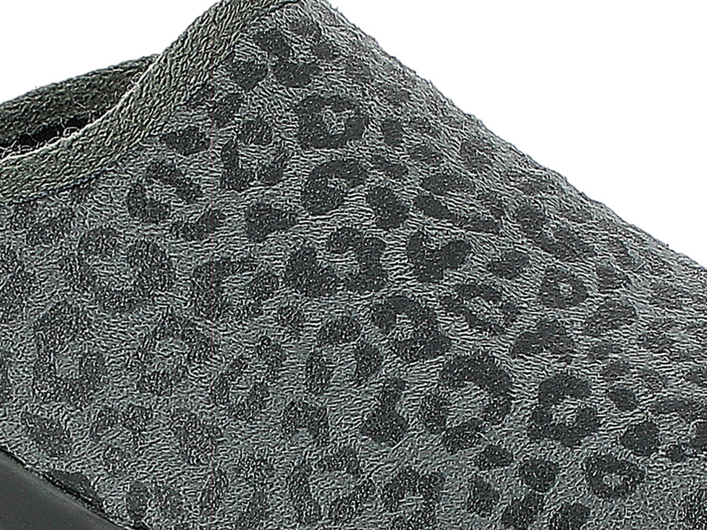 Pantofole da donna con tomaia realizzata in morbido tessuto e fantasia animalier. Adatte sia ad ambiente interni che esterni.