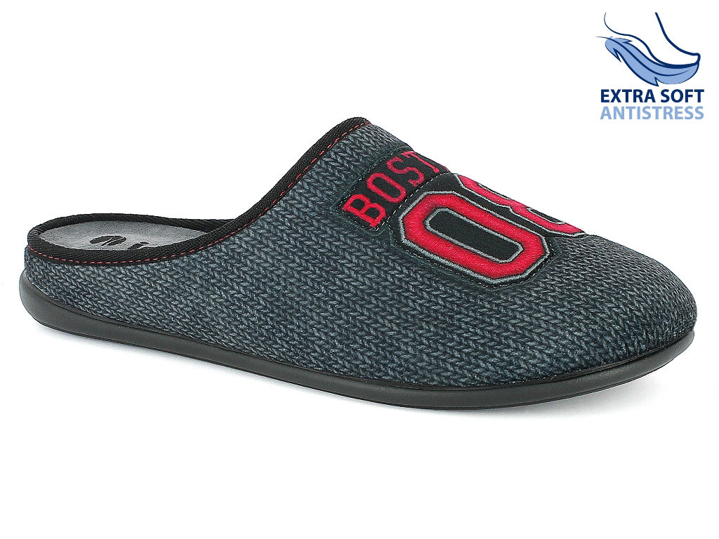 Pantofole uomo con scritta Boston 08. Con plantantare estraibile in morbido tessuto.