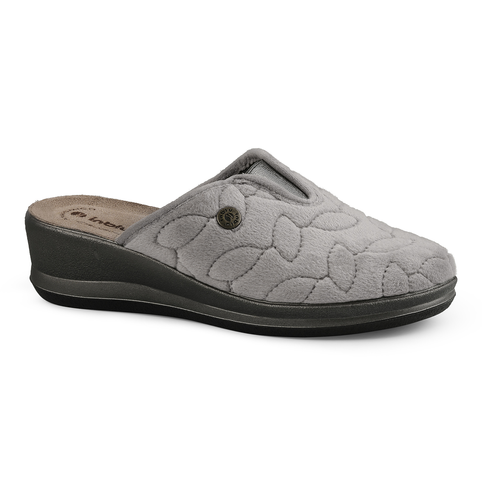 La decorazione geometrica cucita sulla tomaia rende queste pantofole originali! Hanno un plantare in vera pelle imbottito anatomico e un inserto elastico che le rende adatte a ogni calzata.La suola è leggera e il tacco di 4,5 centrimetri permette di slanciare la tua figura anche in casa.