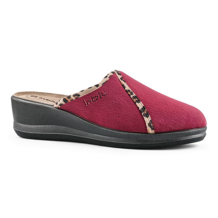 Pantofole con inserti leopardati, tacco e plantare in vera pelle.