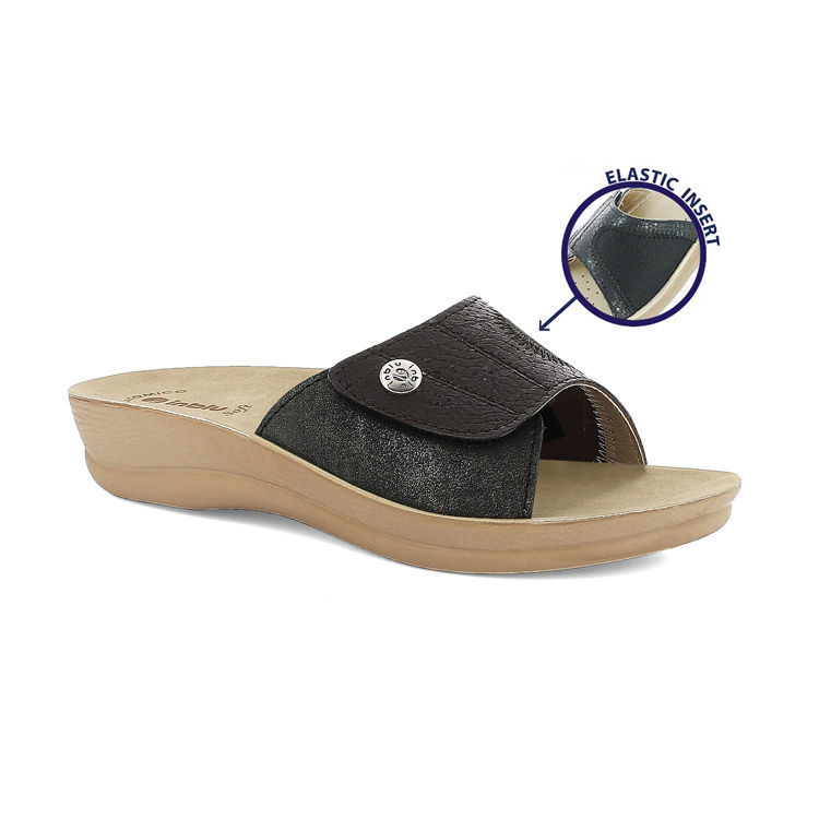 Ciabatte benessere con chiusuraa strappo ed inserto elastico. Plantare soffice e anatomico.