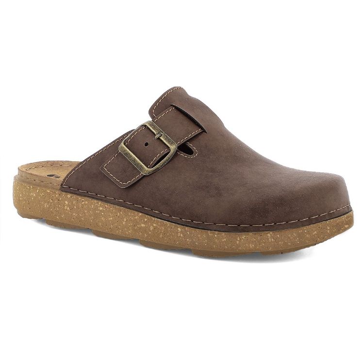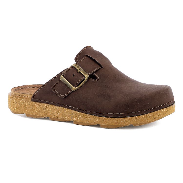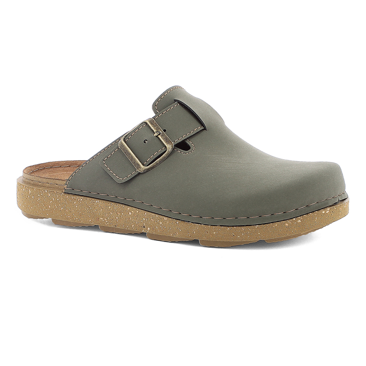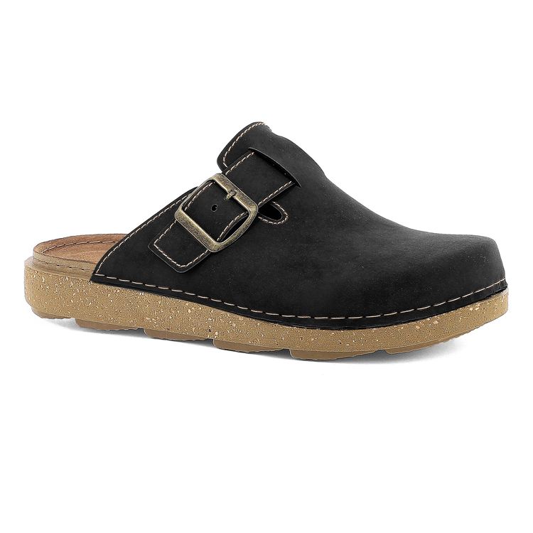 Sabot uomo con comoda fibbia che permette di adattare la calzatura ad ogni collo del piede. Il plantare è in vera pelle.